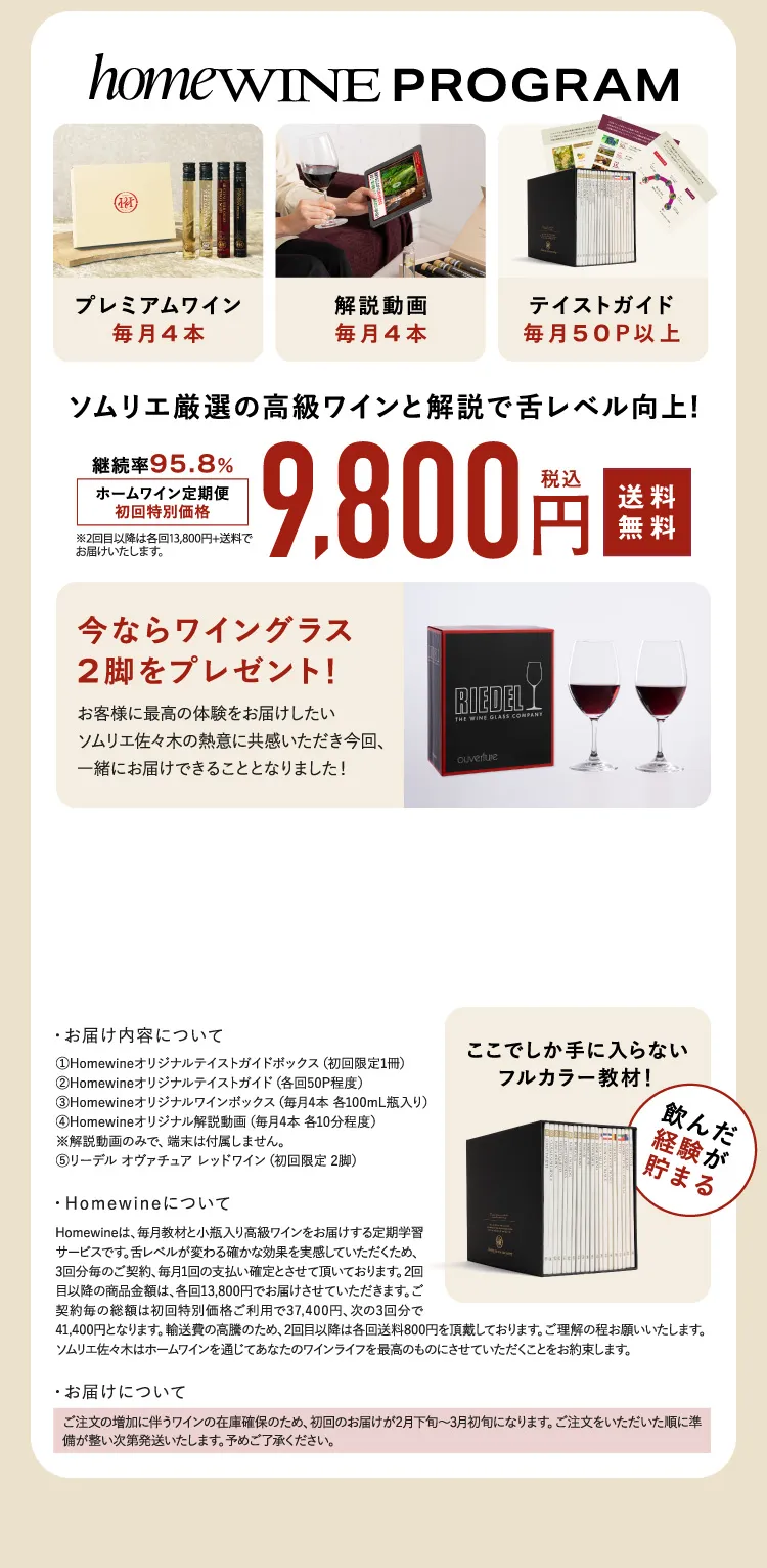ー 解約については、お届け日15日以前にカスタマーサポート(LINEソムリエコンシェルジュまたはメール)までご連絡をお願いいたします。お届け日14日以内にご連絡を頂いた場合には、次々回の注文分からの適用となります。ご連絡をいただかない限り、定期販売は継続となり、商品の製造や発送に伴うご請求が発生致します。